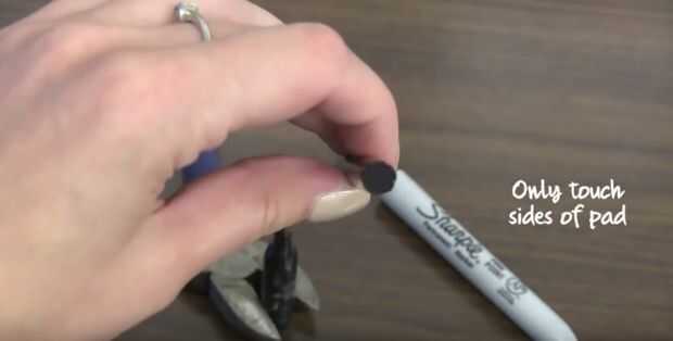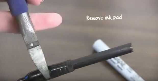 Retire la almohadilla de tinta del envase del marcador. Tenga cuidado de tocar sólo los lados o te manchas los dedos!