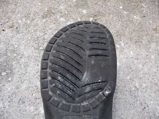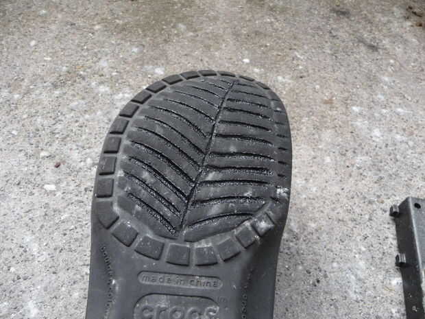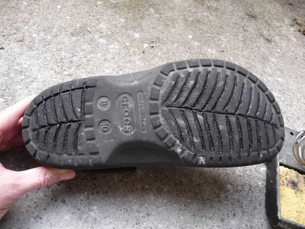 Me encontré con cuidado el soldador a lo largo de la parte inferior de la Croc que recrea el diseño del canto.
