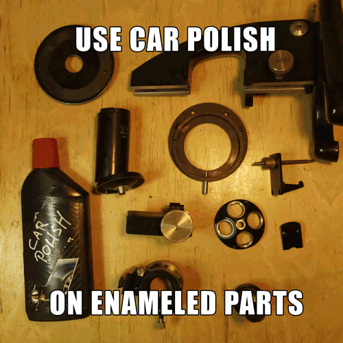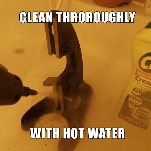 Uno por uno, Limpie todas las piezas con jabón y vapor y aire comprimido para secar. Esta manera, ningún residuo permanecerá y no aherrumbrará en el microscopio.