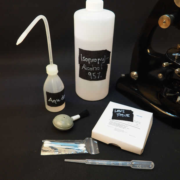 Máxima atención está garantizado al limpiar las lentes. Super cuidado, las lentes están recubiertas y rayar fácilmente. Rayones en lentes será visible en la imagen como áreas que aparecen fuera de foco. Por otro lado, rasguños y polvo en el ocular puede ser mucho más amenazante ya que será visibles como una imagen superpuesta a la imagen en el microscopio.