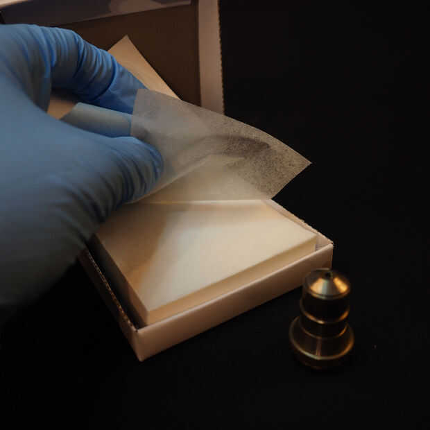 - Use papel de lente. Papel lente es papel delgado que se coloca en la lente cuando se seca y luego aplicar una gota de agua (o IPA) a. Suavemente mueva, luego tire de ella para eliminar cualquier partícula de polvo restante.