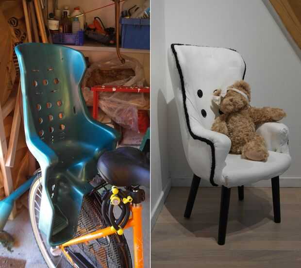 OK, así que fui limpieza mi taller y me sobre para lanzar este antiguo asiento de bicicleta, cuando noté que en realidad tenía una forma bastante aseada. Me decidí a hacer algo fuera de él en su lugar, y por lo tanto, en vez de tirar un montón de cosas hacia fuera (y así limpias mi taller) hice un sillón para mi hija. Manera de evitar la limpieza!
