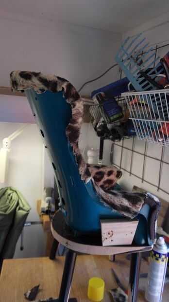 Yo entonces aerosol pegado otra vez y aplica una manta vieja que encontré para arriba en el ático. I cortar pequeños trozos de forma y acaba de aplicar con pegamento.