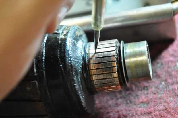 He utilizado con éxito scotchbrite para esto. Envuelva el vendaje alrededor del conmutador, agarrarlo con la mano y la armadura de la torcedura alrededor unas cuantas veces. debe hacer una gran diferencia. Envuelva su scotchbrite para que no roce con el cableado de la armadura, solo el conmutador. Foto 3 muestra lo que parece un conmutador limpio y brillante. ¿Tenga en cuenta cómo hay surcos pequeños en el conmutador? por eso es muy importante el viejo escobillas vuelvan a entrar en el mismo lugar exacto que vinieron hacia fuera y se enfrentan a la manera correcta. Si el ranurado es malo, es la técnica adecuada para montar la armadura en un torno, gírela hasta que hayas quitado la ranura, socava la mica y usar escobillas nuevas. ese procedimiento está fuera del alcance de este instructable.