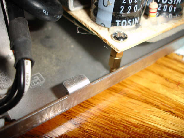 Así, en las fotos dos y tres, cortar algún metal de la caja de alimentación vacía, usando los orificios roscados existentes y recortar para hacer dos soportes adicionales.
