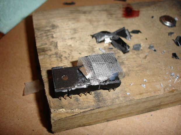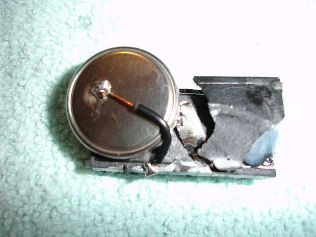 A partir de ahí, temporalmente de la tachuela soldada una pila de botón de litio de 3V a la pestaña positivo.