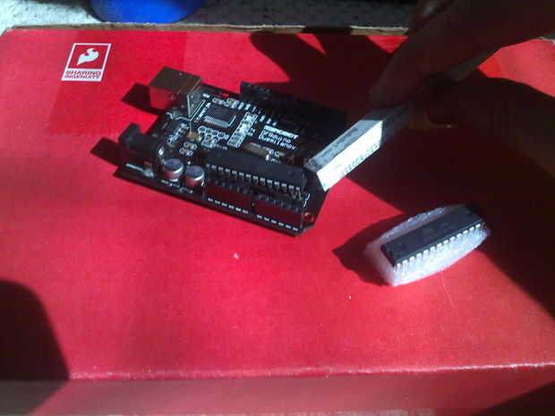 Cuña suavemente la barra en un borde del borde del chip, no el borde con la mente de pins (todavía planeo sobre la fijación de este chip)