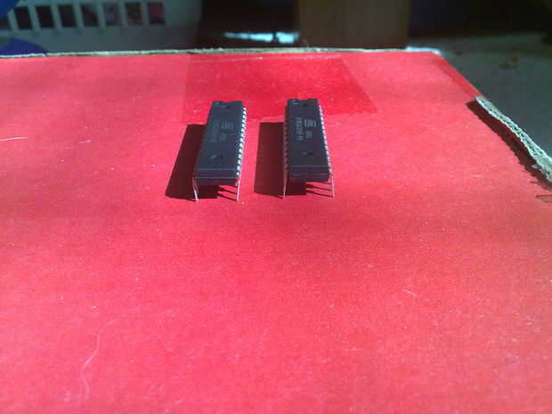 Con una comparación entre el nuevo chip y el chip viejo me di cuenta de las clavijas no fueron dobladas correctamente para el arduino.