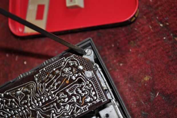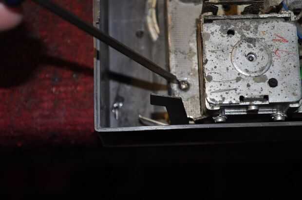 ¿cubierta inferior está apagado? localizar los tornillos que sujetan el chasis a la carcasa de plástico. en las máquinas tempranas son en las 4 esquinas, en las máquinas más tardías es ligeramente diferente. los dos por la palanca de control están en el mismo lugar pero puede haber sólo uno en el otro extremo algo centrado.