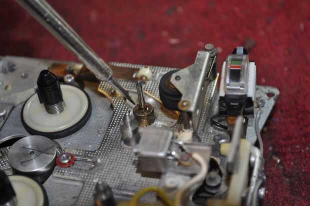 Cuando el eje motor y cabrestante, poner su gota de aceite de engrase allí, girar la parte menee un poco, entonces tome un hisopo limpio y empaparse de cualquier aceite extra así que no consigue en su cinturón después. Limpie el eje del cabrestante con un alcohol cruce q-Tip cuando termines aceitado para que no acidently conseguir el aceite en sus cintas.