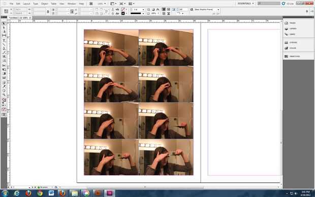 Ahora llenan el resto de la página de fotos, utilizando la línea de color de rosa como su guía.
