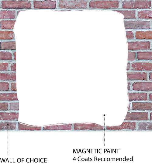 En este punto usted debe ya compraron pintura magnética aditiva, que es esencialmente finamente las partículas de hierro de la tierra que se agregan a una cartilla. El tamaño de "Un cuarto" es suficiente para cubrir un 8' pie por 5' pies de superficie.