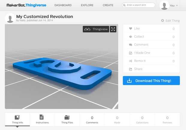 Descargar el stl. archivo en "Mi cosa" de su cuenta de Thingiverse.