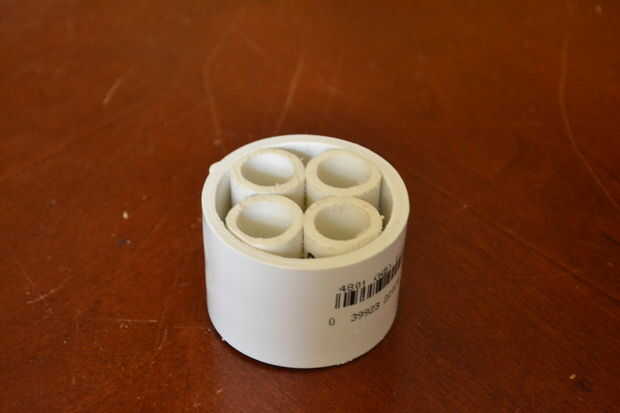 4. Deslice una clavija de madera ~ 5 pulgadas en el cruce de los 4 tubos de PVC, esto debe ser una restricción muy apretada.