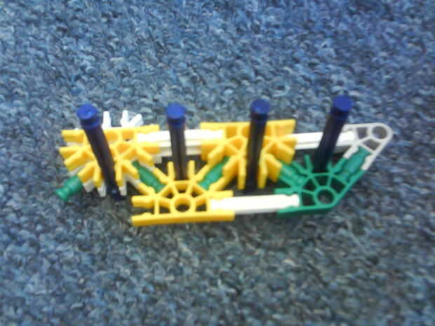le mostrará cómo hacer un relvolver semi-auto rifa de K'Nex. Usted puede hacer tantos barriles como quieras. Estas son las revistas. También se pueden poner tantas bandas de goma como tu quieras pero no poner demasiado para que no se tire el pasador