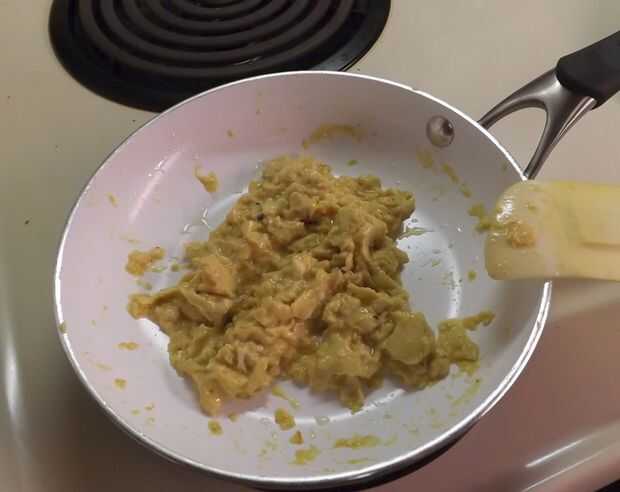 - A continuación, añadir la mezcla de huevo a la sartén y cocinar hasta alcanzar la densidad deseada, girando suavemente y revolviendo ocasionalmente hasta que los huevos son revueltos como se les...