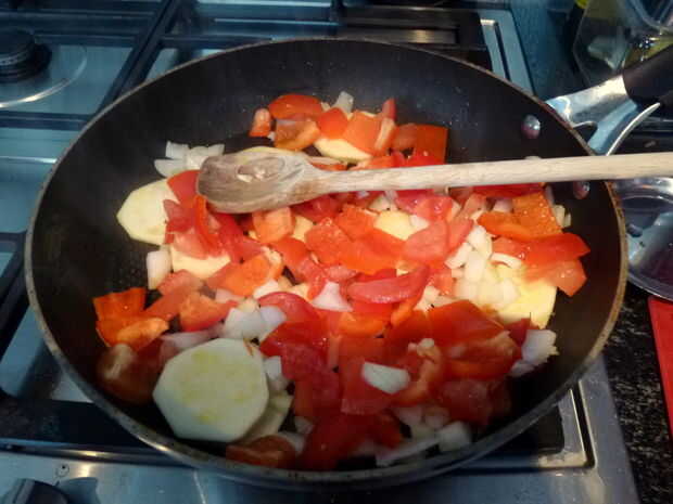 Freir las verduras con aceite de oliva durante 3 minutos a fuego medio.
