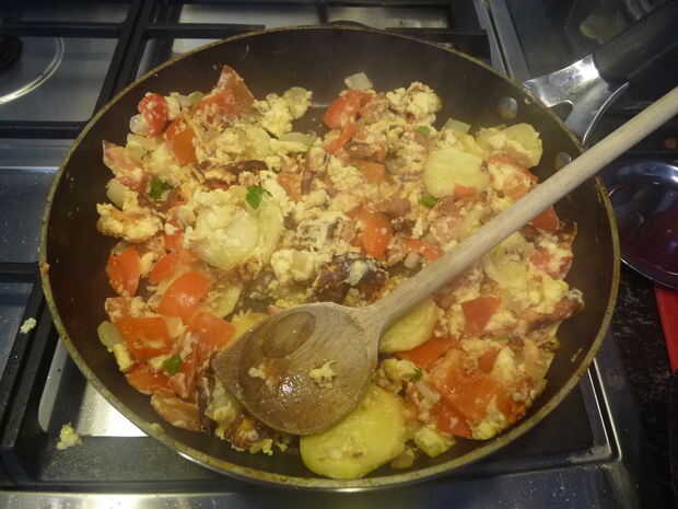 mientras que no hacer en el ' clásico ', este método utiliza hardware que mayoría de la gente ya tiene en la cocina. Mi humilde opinión, es la tortilla de patatas 'perfecto'.Recuerde, esto toma práctica lotsa así si no conseguirlo al primer intento,