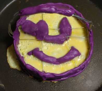 • Vierta en la mezcla de huevo y deje para cocinar hasta que los bordes mirar seco y los huevos son lo suficientemente estables como para desmoldar