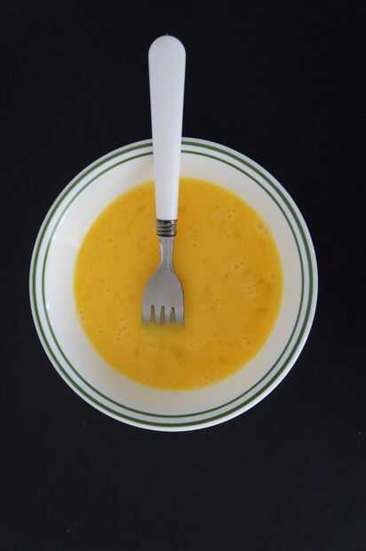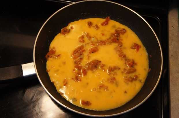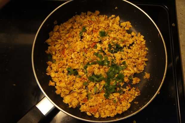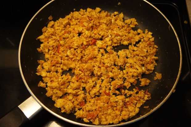 Huevo revuelto para el relleno está listo. Cualquier variación en el huevo revuelto se puede hacer como desee.