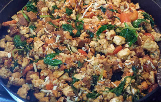 Ahora tienes tu revueltos de desayuno caliente, pegajosa, colorida, saludable!