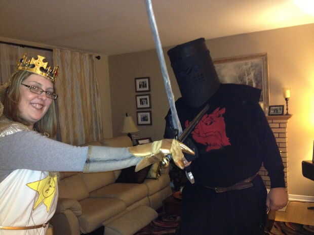 Incluso podría tener un escudero con cocos para simular un caballo, y aún no necesita un trago para traerlo!
