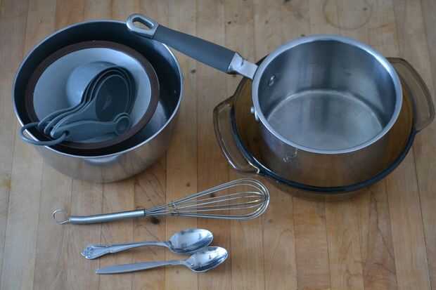 Equipo necesario se muestra en la primera foto. Aquí el equipo es bastante estándar, solo hacen que uno de sus cuencos Pyrex o metal. Hacer el helado a más tardar en la noche antes de servirlo.