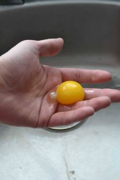 Paso 2. Si no han separado sus huevos para que tenga sólo las yemas, necesita hacerlo. La mejor manera de separar un huevo es crack en su mano y menear los dedos para que el huevo cae entre su. No quiero cualquier blanco mezclada con tus yemas, así que si se rompe una yema de huevo, vuelva a intentarlo.