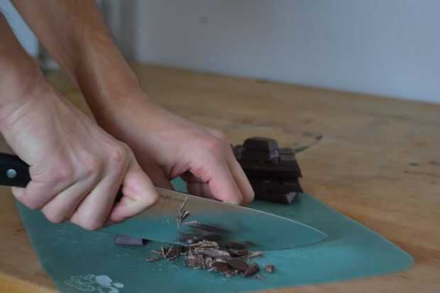 Paso 4. Picar el chocolate. El más fino te pique, cuanto más rápido se derretirán.
