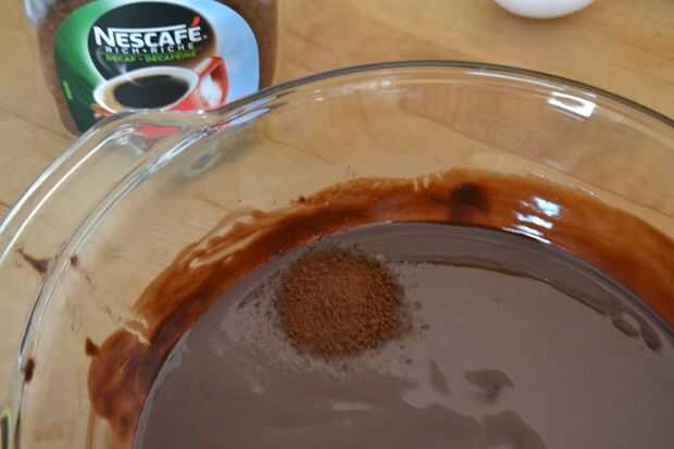 Paso 6. Mezcle los gránulos de café instantáneo en la mezcla de chocolate derretida. Café instantáneo realza el sabor de chocolate, no podrás degustar café.