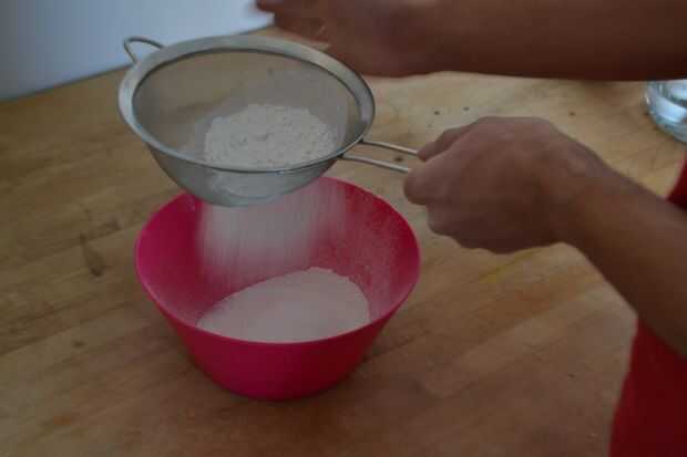 Paso 7. Tamizar la harina y el cacao en un bol, añadir el polvo de hornear.