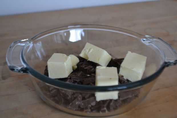 Paso 5. Añadir el chocolate y la mantequilla en un recipiente de microondas seguro y de microondas por 30 segundos. Mantener el microondas en intervalos de 30 segundos y revolver después de cada intervalo. Una vez que se haya derretido, sacar y dejar enfriar. No microondas más después de que se haya derretido.