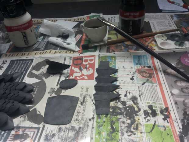 Primero aplica una capa de pintura negra como una base con un pincel plano y deje que se seque. También pinté el interior.