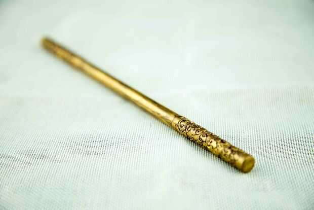 Sutilmente la pintura una laca de oro de la aguja. También el oro armaduras por igual.