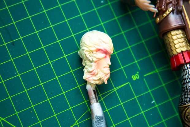 Cubrir una piel Canaria en la cabeza. Luego barniz la ceja y templos con rosa.