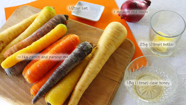 extremos de las zanahorias y chirivías. También pelar la cebolla y picar en 6 a 8 "cuartos".
