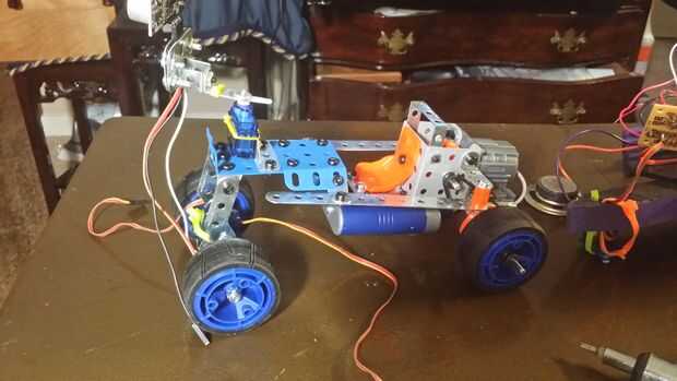 Rey punto es un vehículo de diente azul controlado. Utiliza una distancia de detección dispositivo sobre un servo que gira 60 grados en la parte delantera. Otro servo controla la dirección. El cuerpo está construido de un conjunto de elevadores. A medida que disminuye la distancia a los objetos en el frente un tono aumenta de intensidad. La velocidad de los motores es controlada por códigos de entrada de un dispositivo Bluetooth