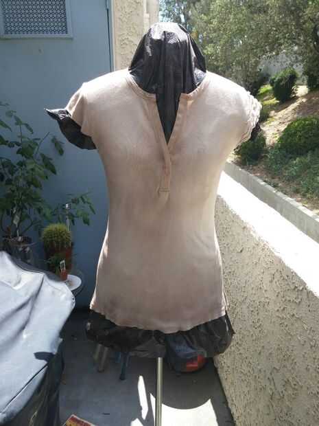 Grado fino papel arena, $3 - esto solía fallar el tejido de mi túnica, dar un desgastado en la mirada, y los parches poco bruto realmente demostrados para arriba una vez que empezaron a rociarlo (véase abajo). También utilicé el papel de la arena en el abrigo de Gasa de burbuja, ayudó a mezclar la tintura de inmersión que había hecho a los inferiores para mostrar decoloración un desgaste. Lo hice con los fondos de mis pantalones también de los misma técnica y resultados. Yo también frota a lo largo de los bordes de mi cinturón a rayar encima de un poco.