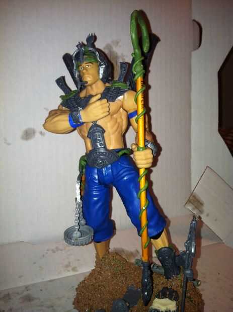 7. opcional: hice lo mismo con el personal de como lo hice con la escala. Envuelve una cadena delgada de verde-materia alrededor de él para hacer un patrón de Tipo remolino.