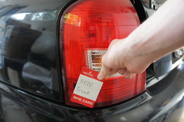 Se podrá caminar hasta el maletero del coche, toque su cadera (que contiene la carpeta que contiene una tarjeta RFID) a un punto específico, haciendo que el tronco pop abierto. Empleará la identificación por radio frecuencia a sentido al sujeto humano, un servo para tirar el cable que sale del maletero y un arduino para controlar el sistema. El sistema se oculta totalmente del exterior.