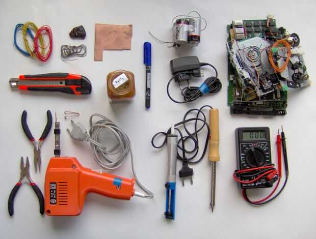 Imagen: http://upload.wikimedia.org/wikipedia/commons/6/6c/Electronics_tools_and_material.jpg