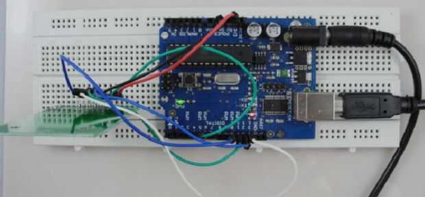 1. Utilice el protoboard para conectar su lector RFID a siete cables de puente que se conectará el lector a arduino.