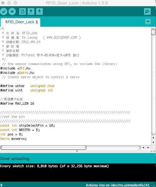 Usé el código que venía en el kit RFID y manipulada para controlar el servo.