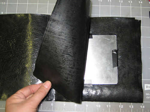 d. Repita para el otro lado. Al grabar en la segunda pieza de metal de hoja, probar que cuando lleno por la mitad, ambas placas alinean uno encima del otro. Esto es muy importante.