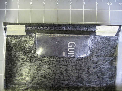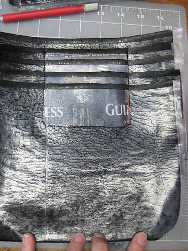 d. para el bolsillo de final, frente, alinear y cinta adhesiva como hiciste con los otros. A partir de donde el más alto puede de bolsillo se encuentra con el bolsillo pasaporte detrás de él, coser una U hacia abajo los lados de las piezas puede, a lo largo de la parte inferior y respaldo al otro lado. Coser justo al lado de la de aluminio. Espalda-tack una pareja extra veces al principio y al final donde el bolsillo es asociar al bolsillo pasaporte para reforzar. Mientras que son costura, tachuela de espalda sobre el borde de cada pieza del bolsillo. No recorte el exceso de este frente, top bolsillo.