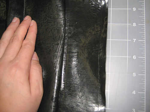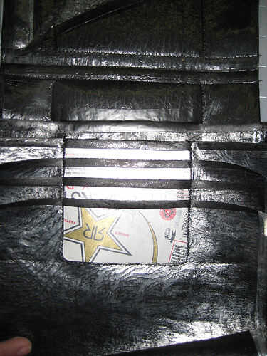 c. coser una 'U' cerca alrededor del perímetro exterior de la chapa. Empezar la costura en la parte superior del bolsillo pasaporte cumple con el cuerpo principal y recorrer desde allí. Asegúrese de amurado a la espalda un par de veces para reforzar los bordes superiores del bolsillo. Go lento. Podría ser útil antes de coser para pulir el borde con su miniatura para proporcionar a una guía visual. Va lenta permitirá que el prensatelas hacer su trabajo y evitar que la aguja se introduce dentro de la chapa. Corte cualquier exceso.
