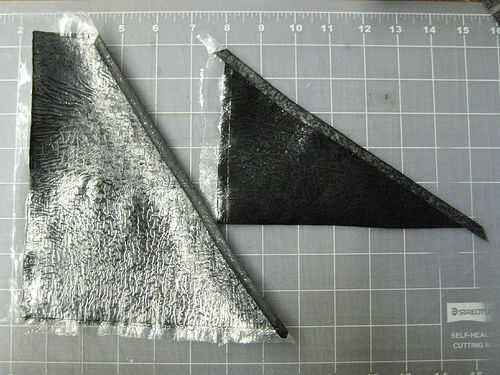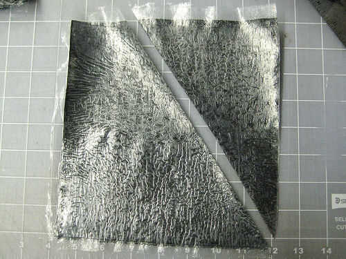 b. Quite la Plaza arrugada y corte a lo largo del pliegue con el borde recto y xacto para hacer piezas #2 ángulo.