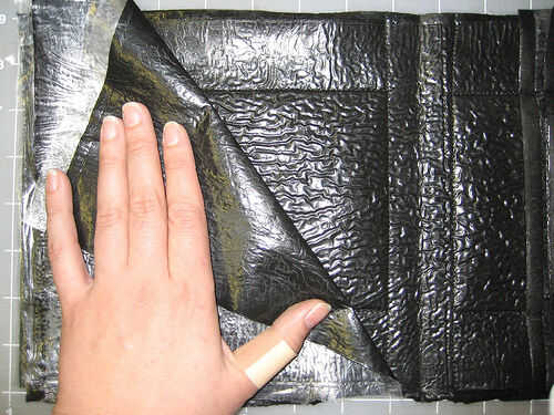 c. por contraste, hice el bolsillo grande con el plástico transparente hacia arriba y el más pequeño con el negro mirando hacia arriba. Voltear los bordes en la parte delantera y fusible 'bajos' igual para las otras piezas de bolsillo.