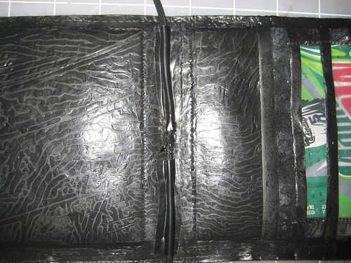 b. usando cinta aislante negra, cinta doble el bucle en el interior de la bolsa. Tiene la parte donde sutura lo allí.