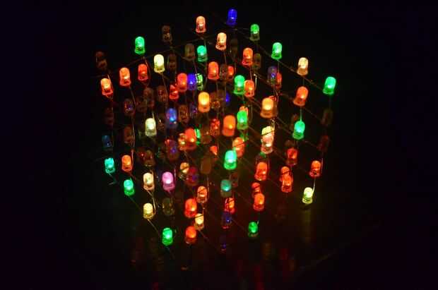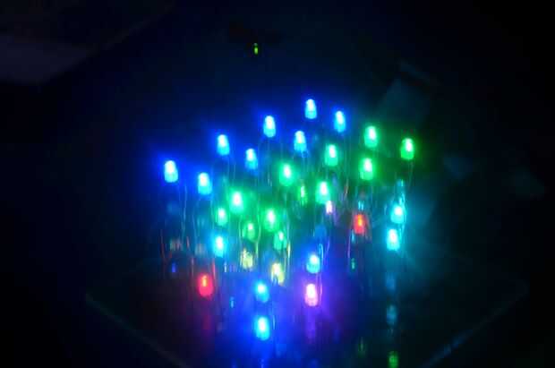 Mucho tiempo atrás encontre un articulo sobre hacer un 8 x 8 x 8 cubos de RGB LED por Kevin Darrah.Esto me inspiro totalmente pero sabiendo a mi esposa me mataría si asumió el control la casa con breadboards que decidí escalar hasta un 4 x 4 x 4 cubo
